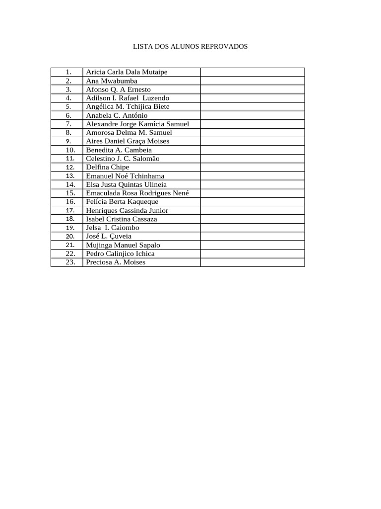LISTA DOS ALUNOS REPROVADOS