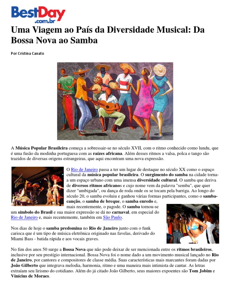 Uma Viagem ao Pas da Diversidade Musical: Da Bossa Nova ao Samba