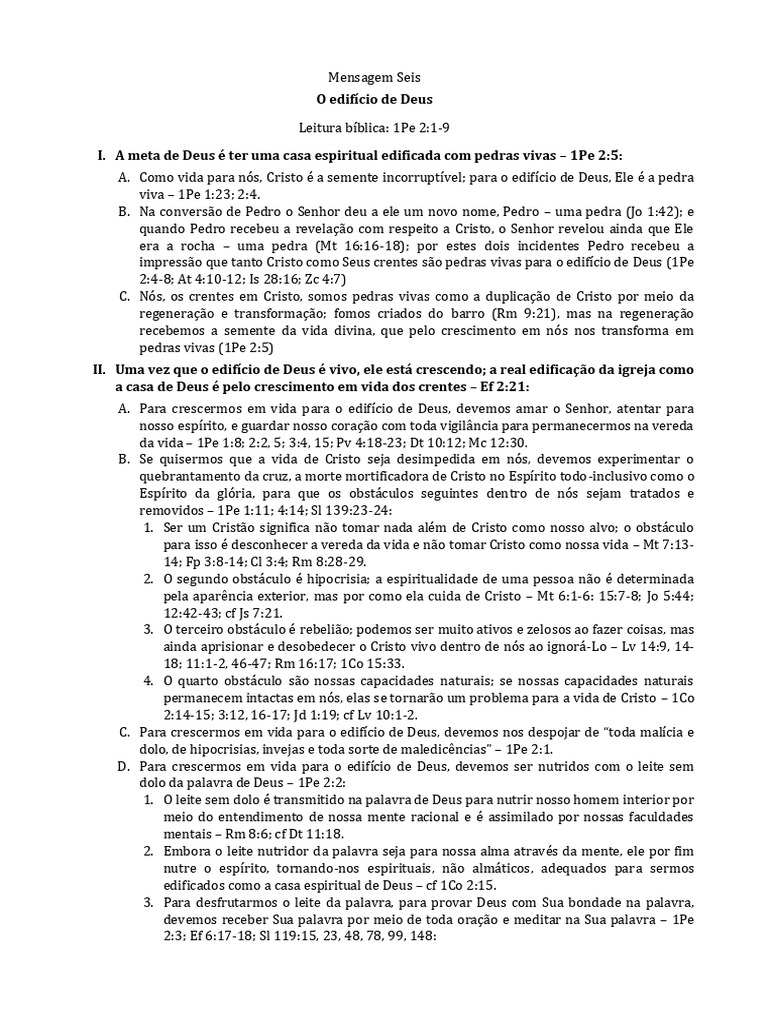 I. A meta de Deus é ter uma casa espiritual edificada com pedras vivas – 1Pe [Link]