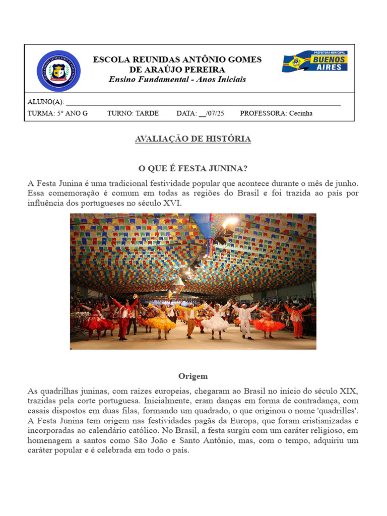 7° “A quadrilha é dançada em pares e conta com música e comandos.”