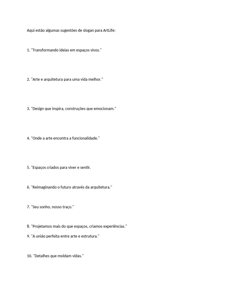 Aqui estão algumas sugestões de slogan para ArtLife: