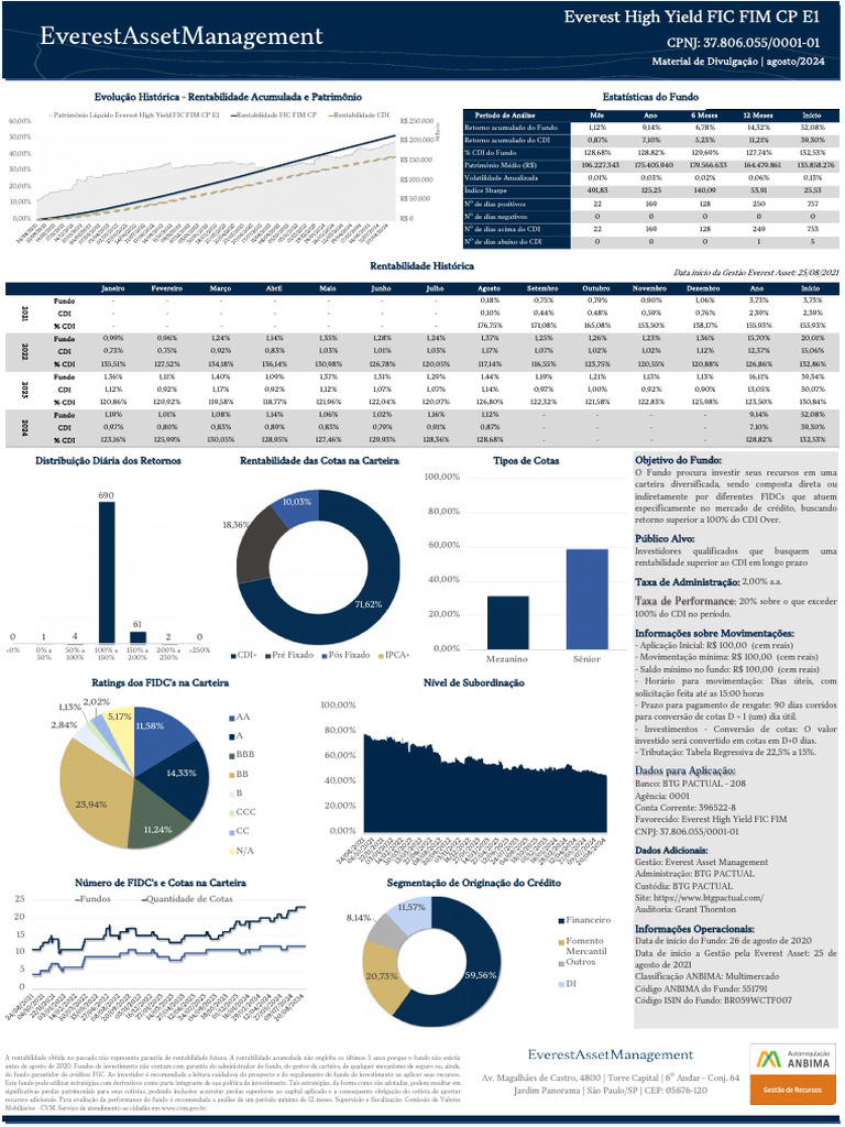 Patrimônio Líquido Everest High Yield FIC FIM CP E1 Rentabilidade FIC FIM CP Rentabilidade CDI Período de Análise Mês Ano 6 Meses 12 Meses Início