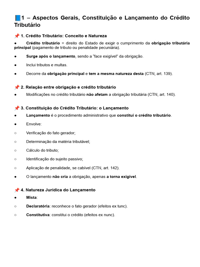 📘1 – Aspectos Gerais, Constituição e Lançamento do Crédito