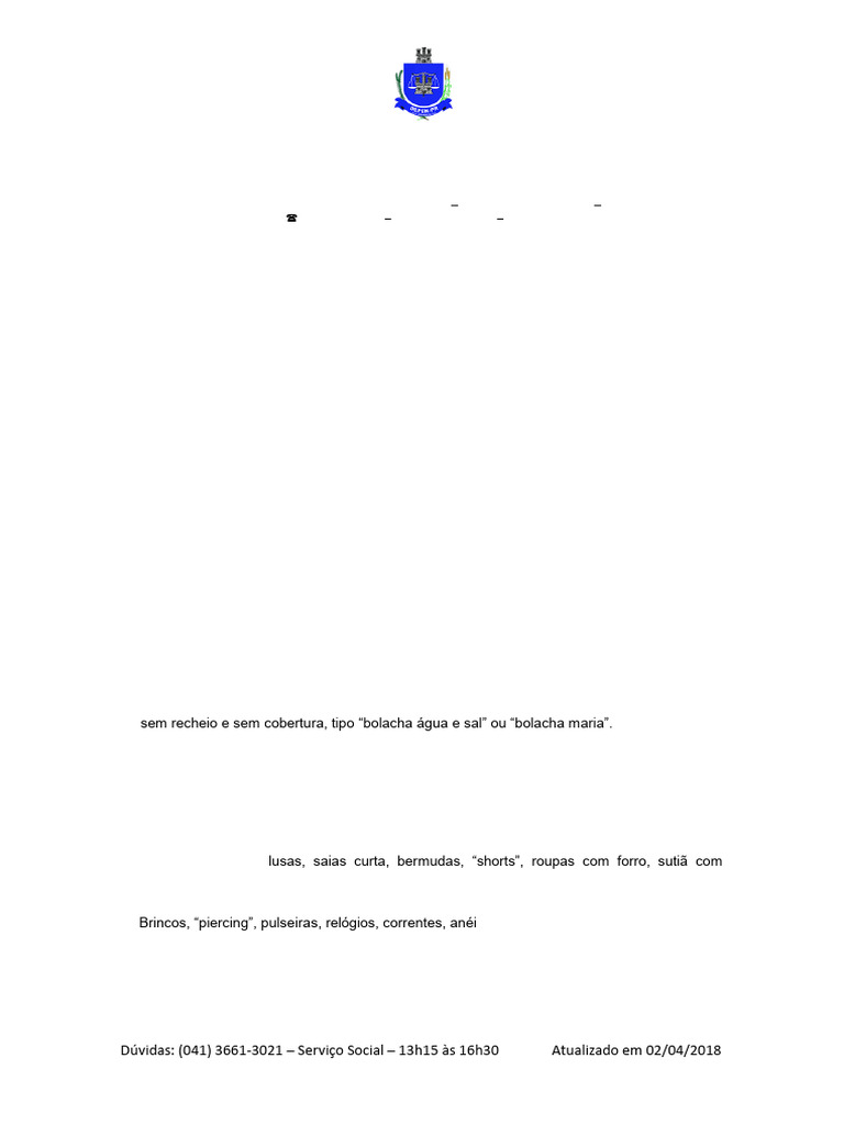 Dúvidas: (041) 3661-3021 – Serviço Social – 13h15 às 16h30 Atualizado em 02/04/2018