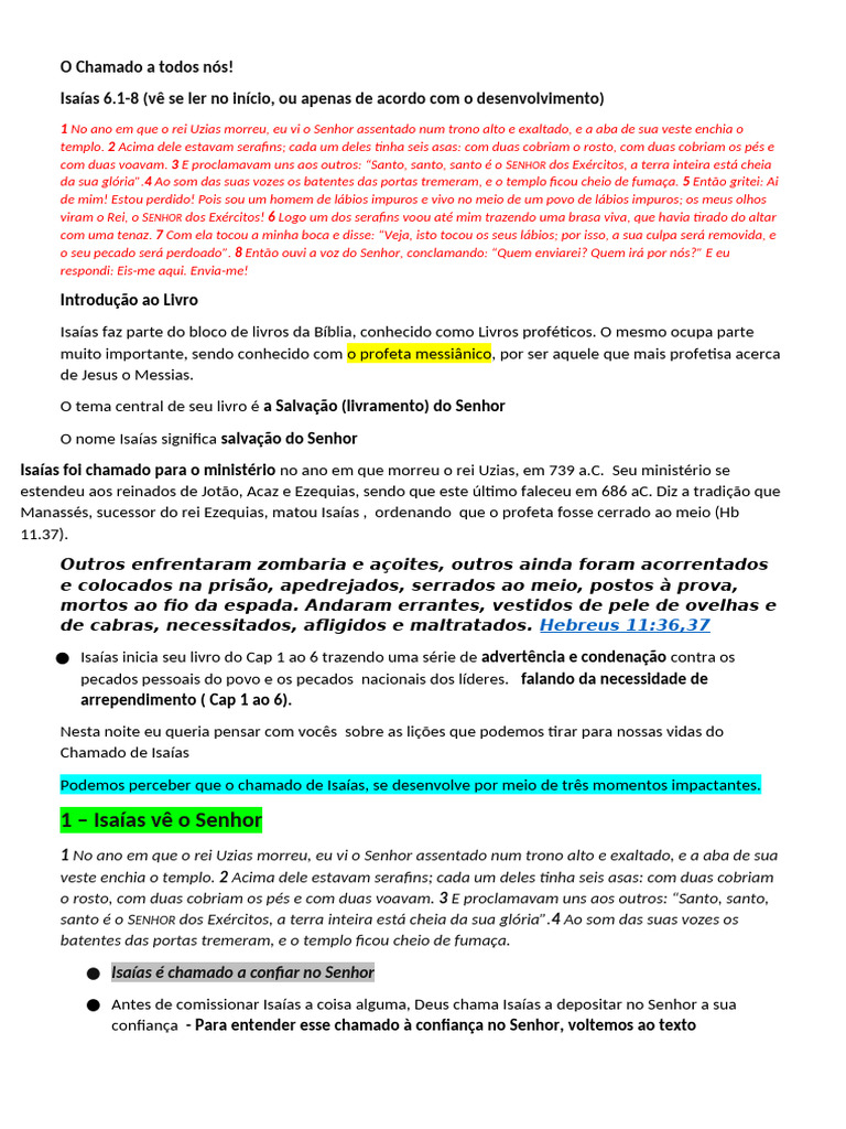 Isaías 6.1-8 (vê se ler no início, ou apenas de acordo com o desenvolvimento)