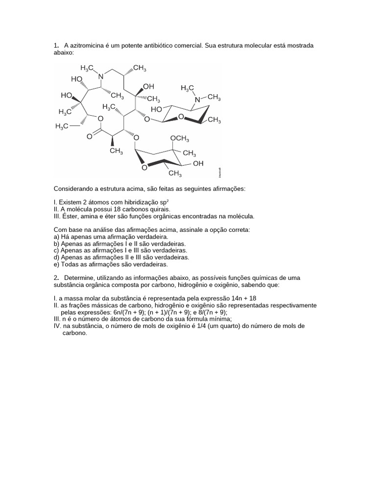 1. A azitromicina é um potente antibiótico comercial.