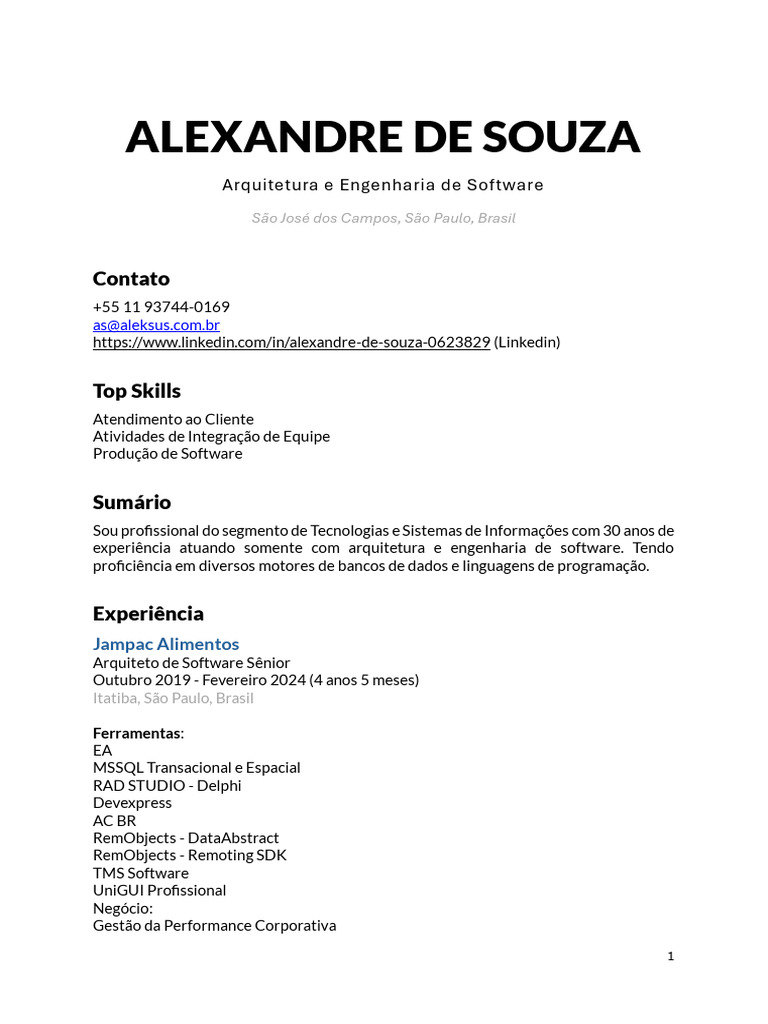 experiência atuando somente com arquitetura e engenharia de software. Tendo