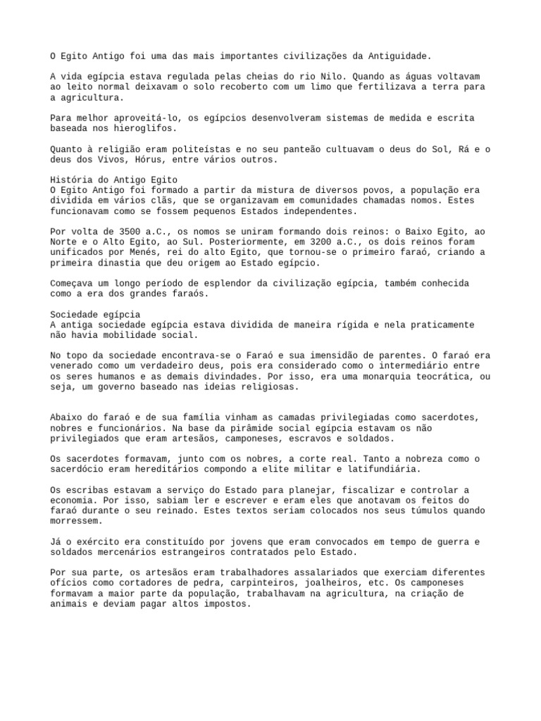 O Egito Antigo foi formado a partir da mistura de diversos povos, a população era