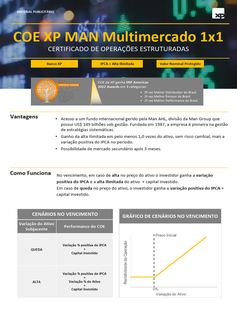 investimento Este documento trata-se de material publicitário, elaborado pela XP Investimentos CCTVM S/A ("XP Investimentos" ou “XP”). O