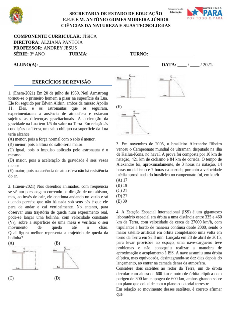 1. (Enem-2021) Em 20 de julho de 1969, Neil Armstrong