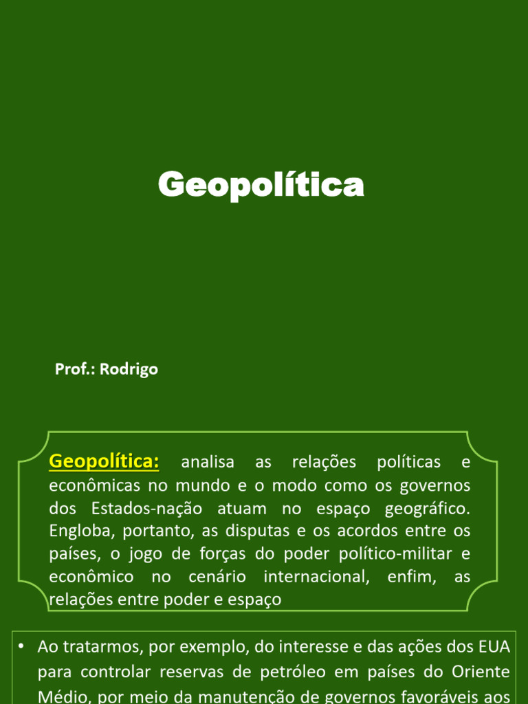 Geopolítica: analisa as relações políticas e