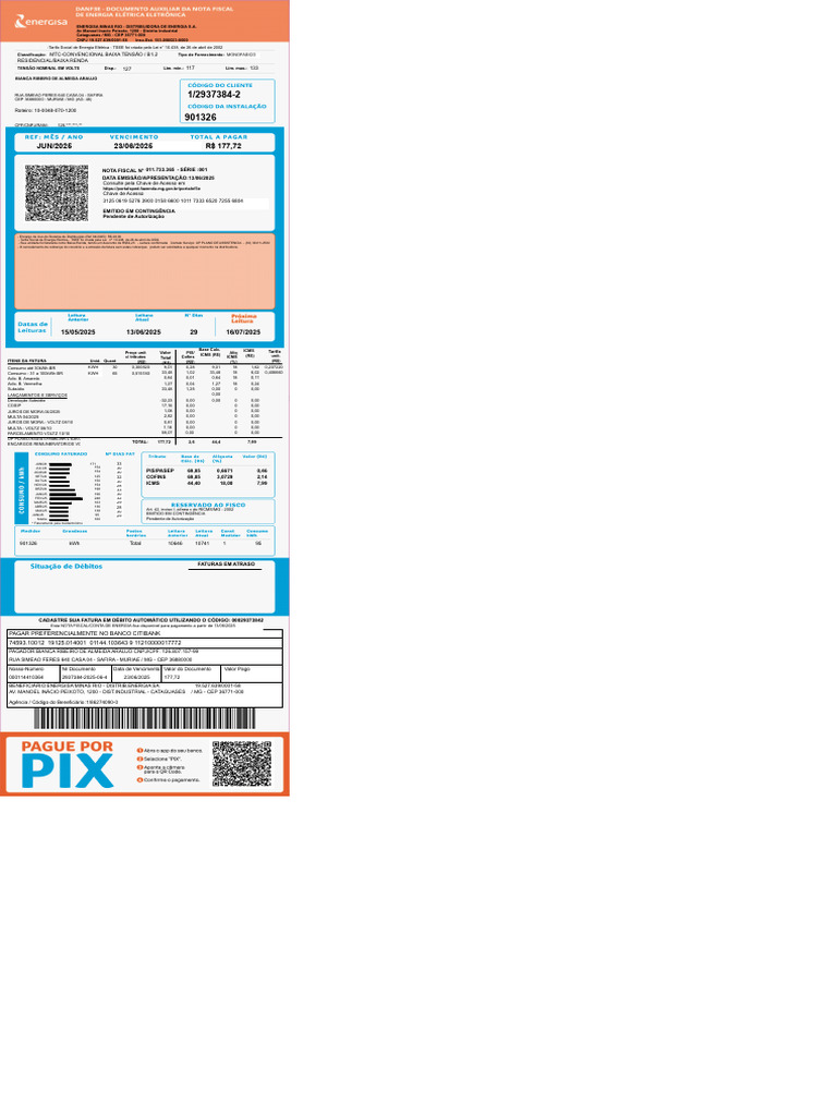 Esta NOTA FISCAL/CONTA DE ENERGIA fica disponível para pagamento a partir de 13/06/2025