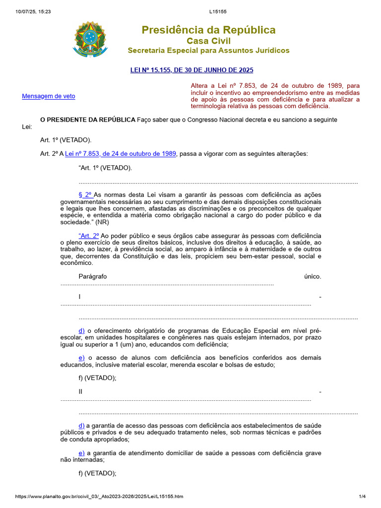 LEI Nº 15.155, DE 30 DE JUNHO DE 2025