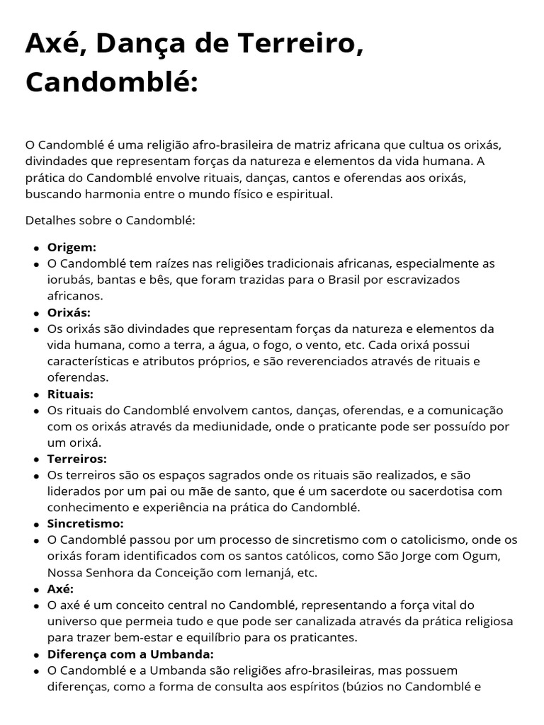 O Candomblé é uma religião afro-brasileira de matriz africana que cultua os orixás,