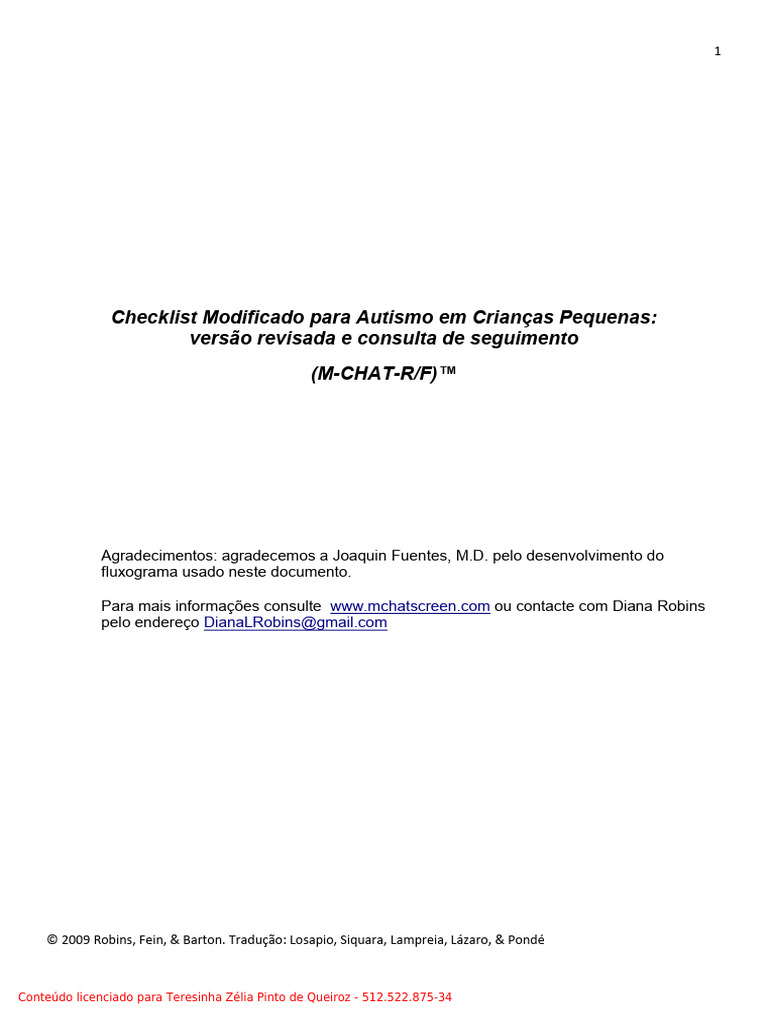 (1) Reproduções do M-CHAT-R/F devem incluir a seguinte referência na parte inferior da página