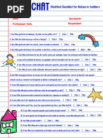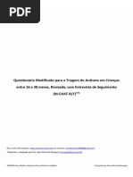 O M-CHAT-R/F é um instrumento de triagem em dois estágios para avaliar o risco de Transtorno do Espectro Autista (TEA) em crianças pequenas, baseado em relatos dos pais. O uso do M-CHAT-R/F é gratuito, mas sujeito a diretrizes específicas de reprodução e uso. O documento também fornece instruções detalhadas sobre a aplicação e pontuação do checklist, além de um algoritmo para interpretação dos resultados.