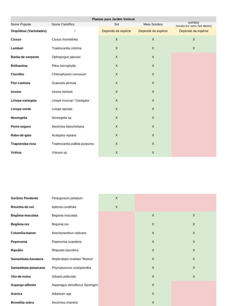 Nome Popular Nome Científico Sol Meia Sombra