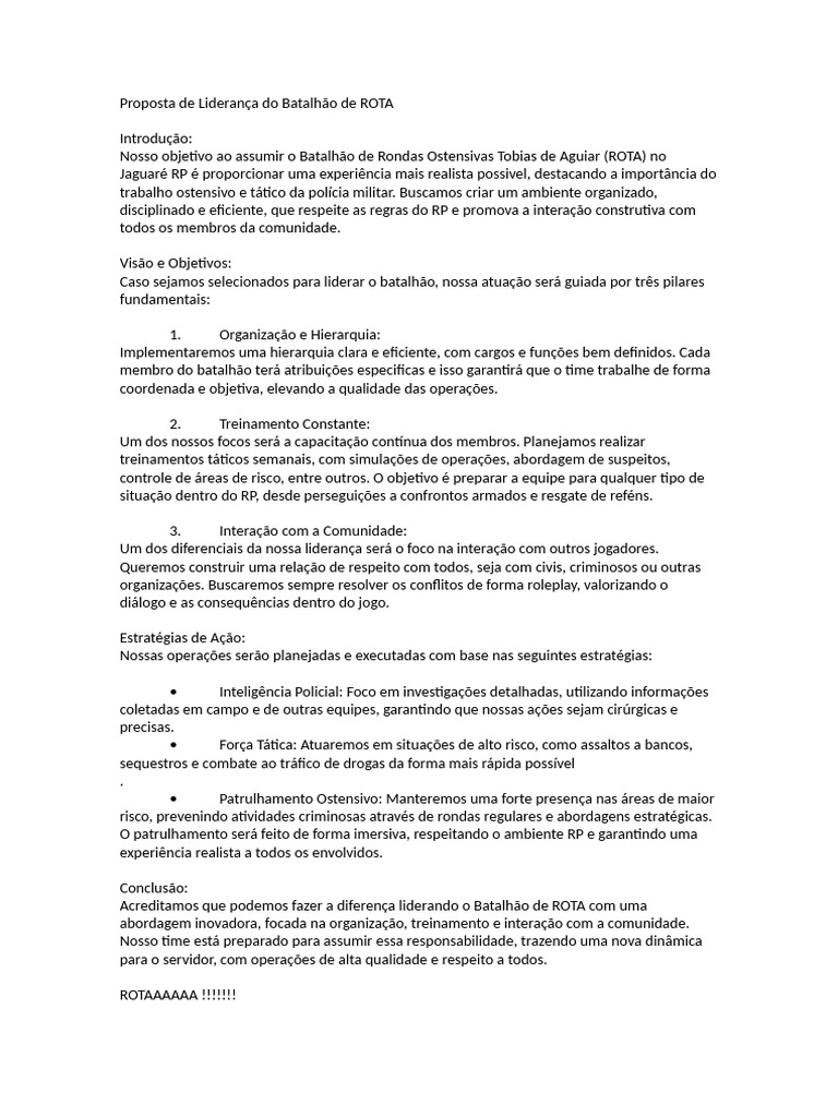 Proposta de Liderança do Batalhão de ROTA