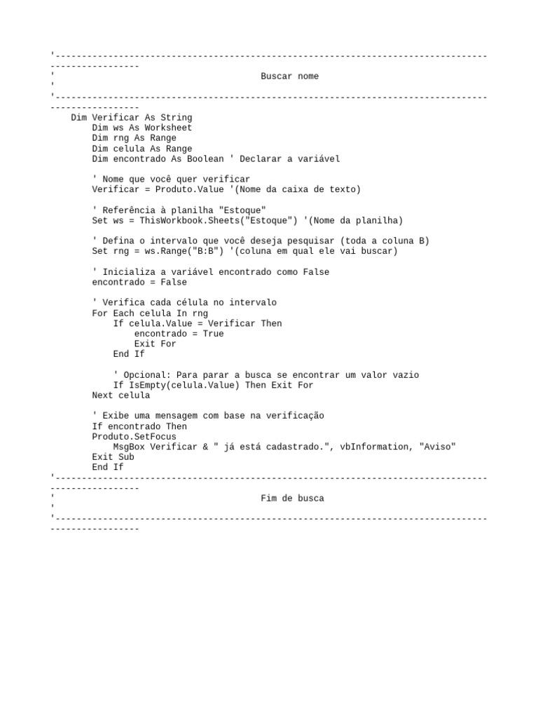 Dim encontrado As Boolean ' Declarar a variável