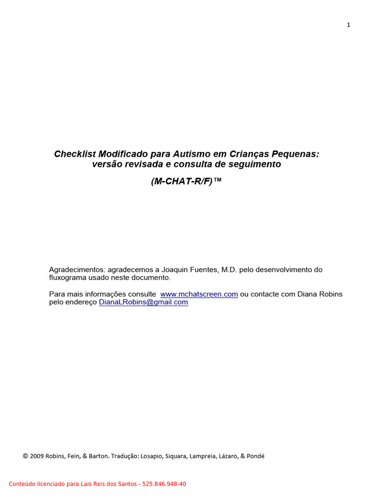O M-CHAT-R/F é um instrumento com direitos autorais e a sua utilização está restrita pelos