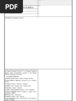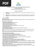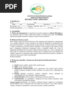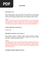 I) Identificao: preencher todos os dados, data do exame. II) Informante: parentesco, perfil psicolgico. III) Anamnese: 1. a) Consideraes gerais: Interpretao da histria: A queixa apresentada, como fornecida pelo informante, pode ser a parte menos importante de uma anamnese. Deve-se estar preparado para continuar, se necessrio, para uma fase mais produtiva da entrevista que pode ter pouca ou nenhuma relao aparente com a queixa como foi originalmente apresentada. Conduo do interrogatrio: Permitir ao informante apresentar o problema como ele o v. Perguntas sero feitas de modo a no permitir divagao por parte da me. As anotaes devem incluir temperamento dos pais, atitude e modo de relacionamento com a criana. Feitura da anamnese: A anamnese deve ser detalhada, com anotaes claras e em ordem cronolgica. Execuo do interrogatrio: Q.P. (Queixa Principal) Breve relato dos pais ou do prprio paciente a respeito de sua queixa e a durao da mesma. HMA (Histria da molstia atual) - quando o paciente esteve bem pela ltima vez? - como e quando comeou a doena? - estado de sade imediatamente antes instalar a doena; - sintomas e sinais fsicos especficos desenvolvidos; - dados negativos importantes; - fatores que agravam e que aliviam; - assistncia mdica e medicamentos administrados (nome, dose, durao, etc.); - em doena infecciosa aguda, relatar o tipo, grau e tempo de exposio; - para a criana que no est doente, determinar os fatores significativos e a condio do estado geral desde a ltima visita; - opinio do examinador a respeito da fidedignidade do informante. HISTRIA OBSTTRICA Nmero de gestaes, partos, abortos. Descrever ocorrncias da gravidez, parto e puerprio. HISTRIA PREGRESSA (antecedentes patolgicos e pessoais) Condies de nascimento, perodo neonatal, infeces, doenas contagiosas, operaes, acidentes e injrias, etc.