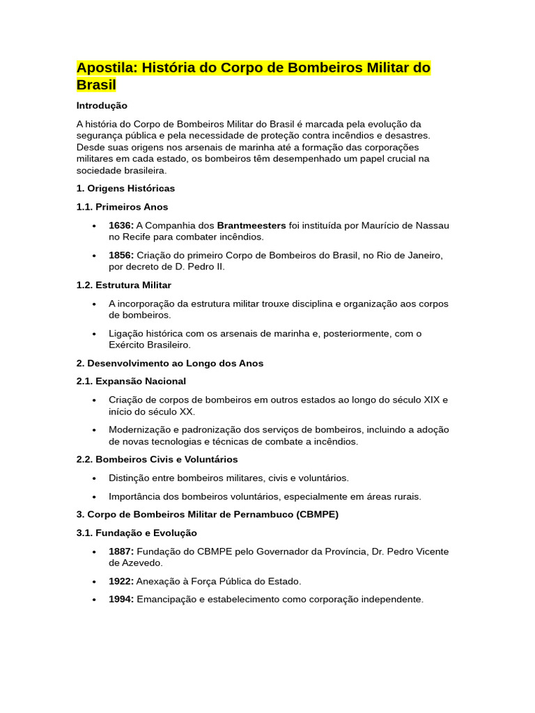 Apostila: História do Corpo de Bombeiros Militar do