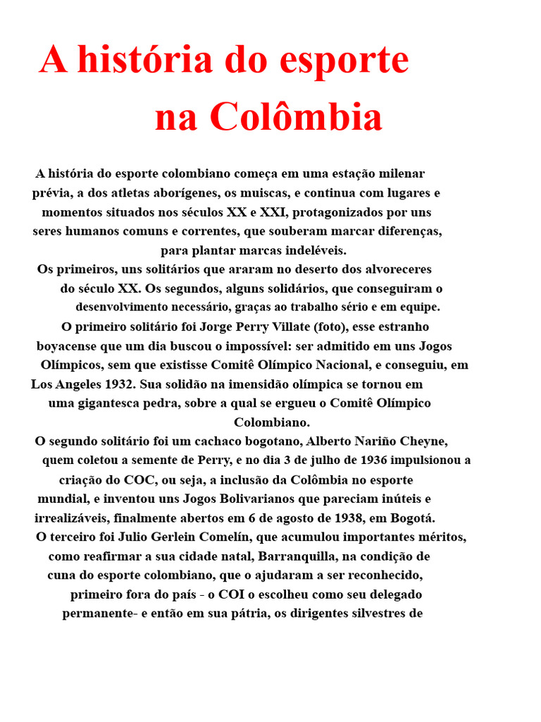 criação do COC, ou seja, a inclusão da Colômbia no esporte