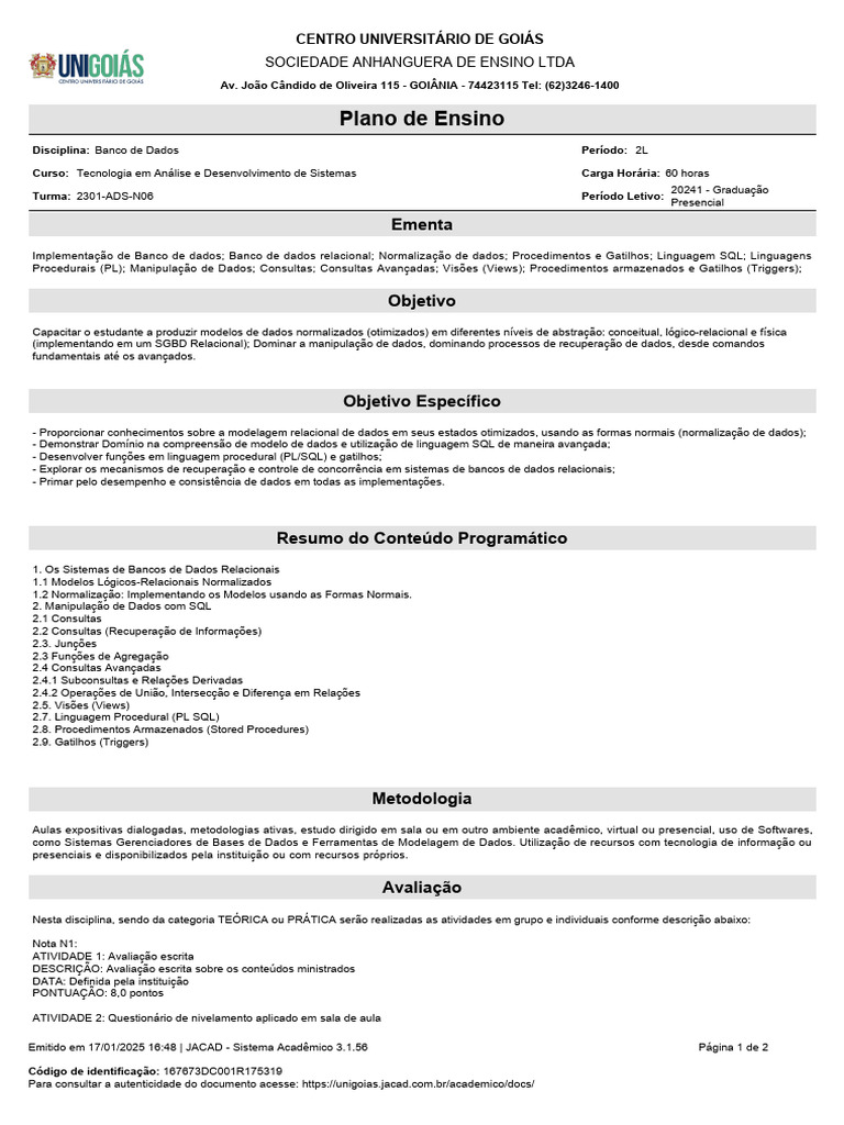 Emitido em 17/01/2025 16:48 | JACAD - Sistema Acadêmico 3.1.56 Página 1 de 2
