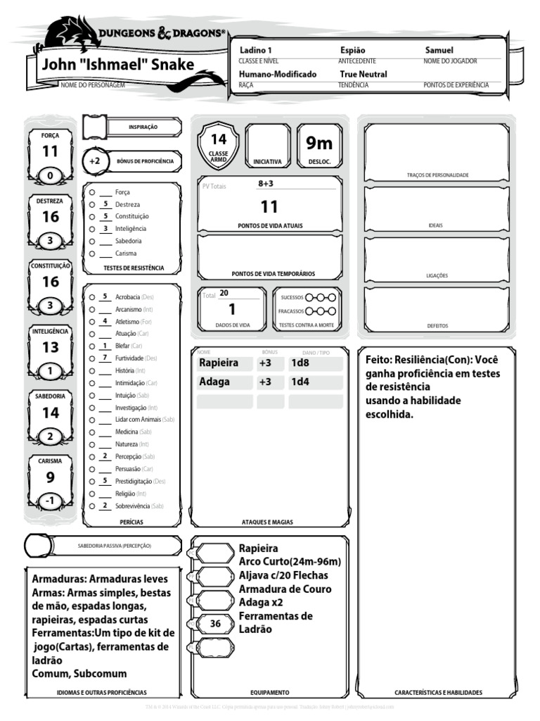 NOME DO PERSONAGEM RAÇA TENDÊNCIA PONTOS DE EXPERIÊNCIA