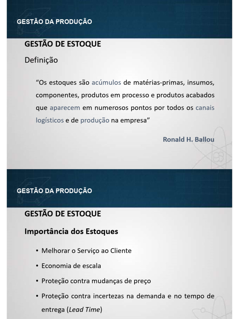 “Os estoques são acúmulos de matérias-primas, insumos,