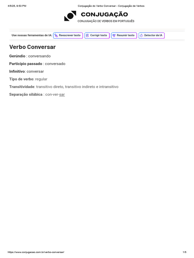 4/5/25, 9:54 PM Conjugação do Verbo Conversar - Conjugação de Verbos