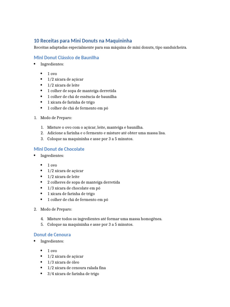 Receitas adaptadas especialmente para sua máquina de mini donuts, tipo sanduicheira.