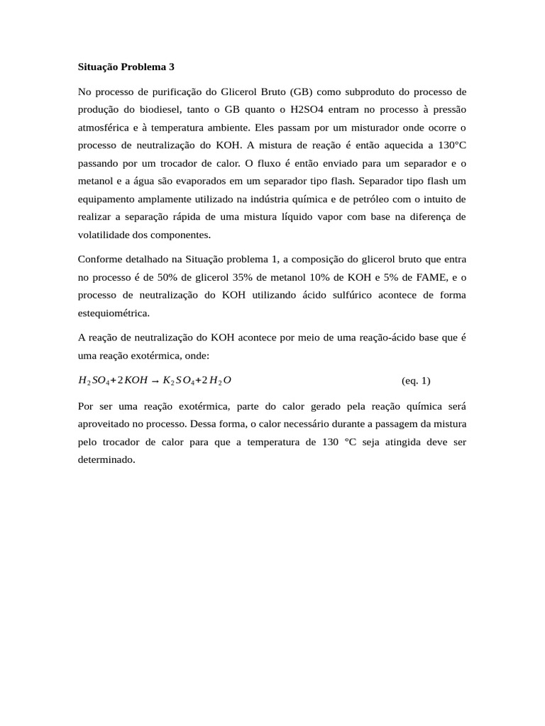 Conforme detalhado na Situação problema 1, a composição do glicerol bruto que entra