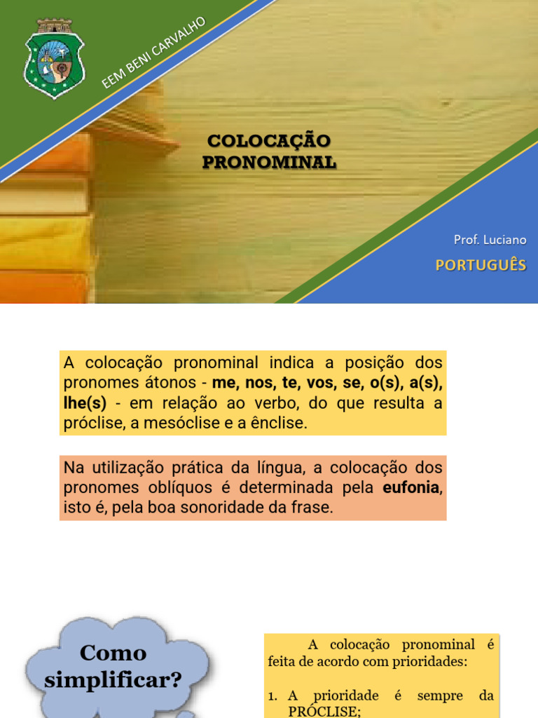 •Foi-lhe explicado como deveria agir. (ênclise depois do verbo