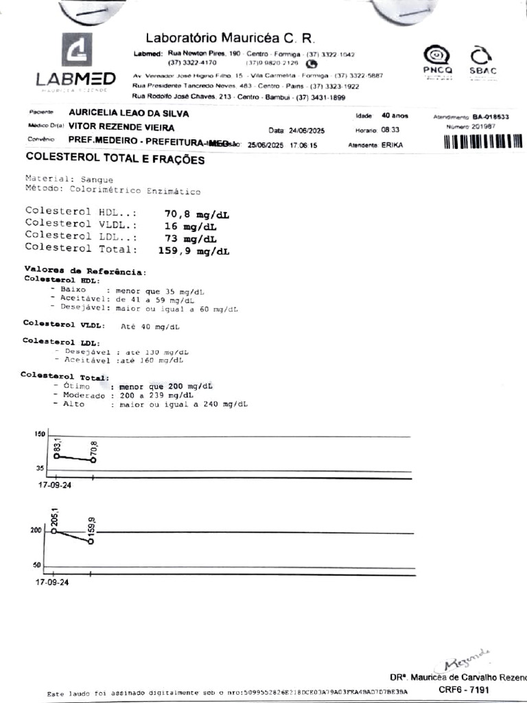Paciente: AURICELIA LEAO DA SILVA 40 anos Atendimento. BA-018533