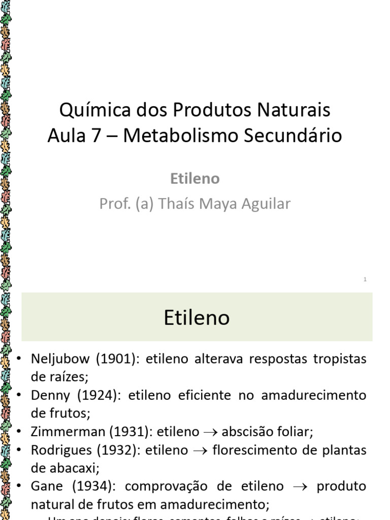 – Um ano depois: flores, sementes, folhas e raízes etileno;