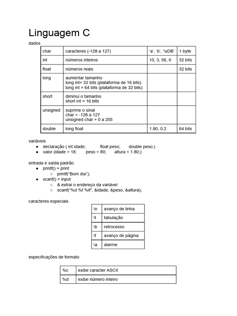 ○ scanf(“%d %f %lf”, &idade, &peso, &altura);