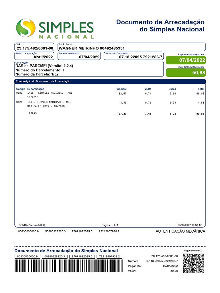 Documento de Arrecadação do Simples Nacional Pague com o PIX