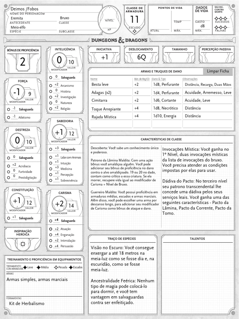 valor 14 de Carisma como bônus de ataque e dano. Lâmina, Pacto da Corrente, Pacto da