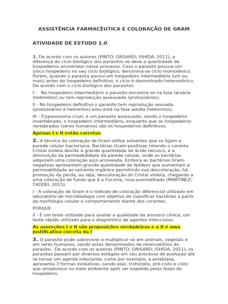 ASSISTÊNCIA FARMACÊUTICA E COLORAÇÃO DE GRAM