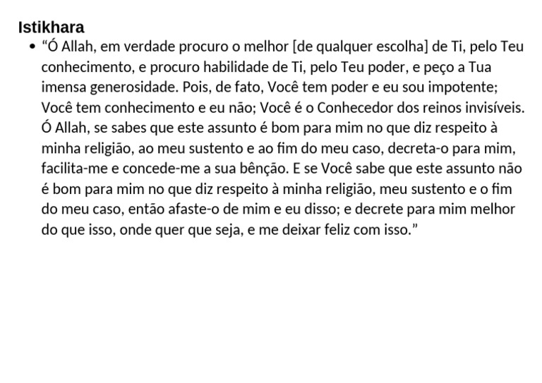 “Ó Allah, em verdade procuro o melhor [de qualquer escolha] de Ti, pelo Teu