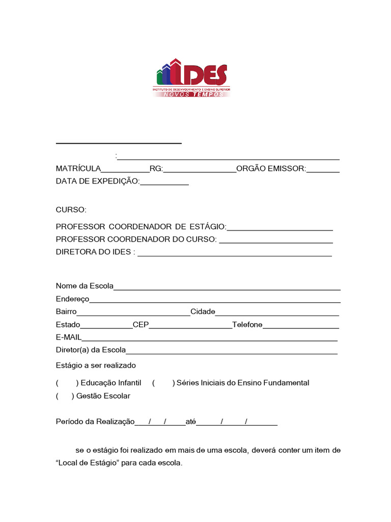 Obs: se o estágio foi realizado em mais de uma escola, deverá conter um item de