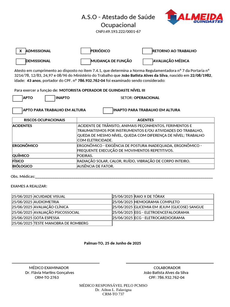 APTO PARA TRABALHO EM ALTURA INAPTO PARA TRABALHO EM ALTURA