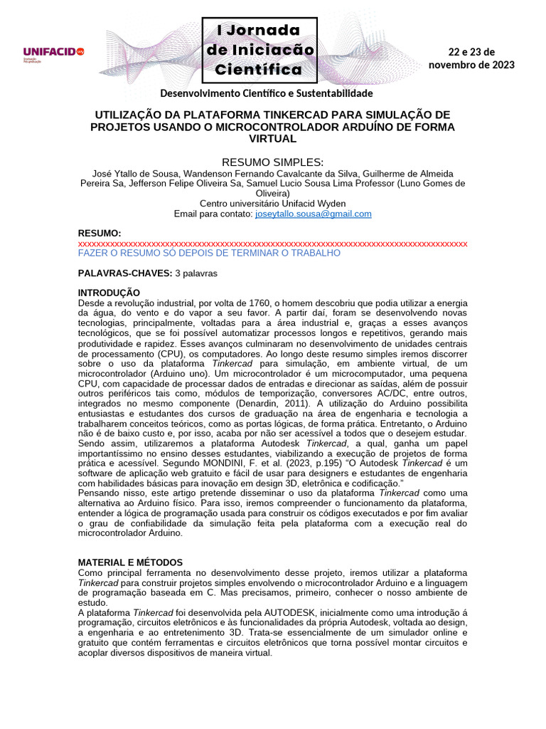 UTILIZAÇÃO DA PLATAFORMA TINKERCAD PARA SIMULAÇÃO DE