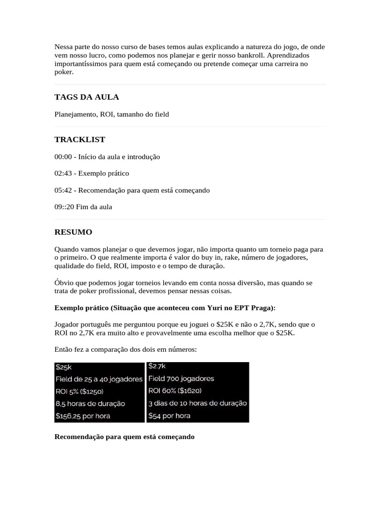 vem nosso lucro, como podemos nos planejar e gerir nosso bankroll. Aprendizados