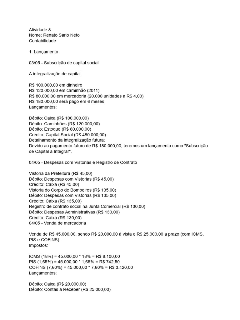 Crédito: Estoque de Mercadorias R$ 1.000,00