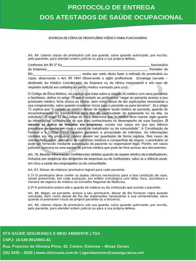 ENTREGA DE CÓPIA DE PRONTUÁRIO MÉDICO PARA FUNCIONÁRIO
