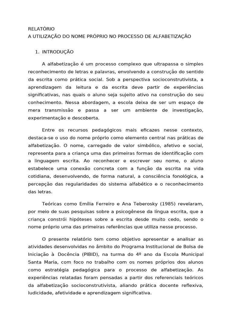 (Ferreiro & Teberosky, 1985). Logo, o nome próprio, por ser um dos