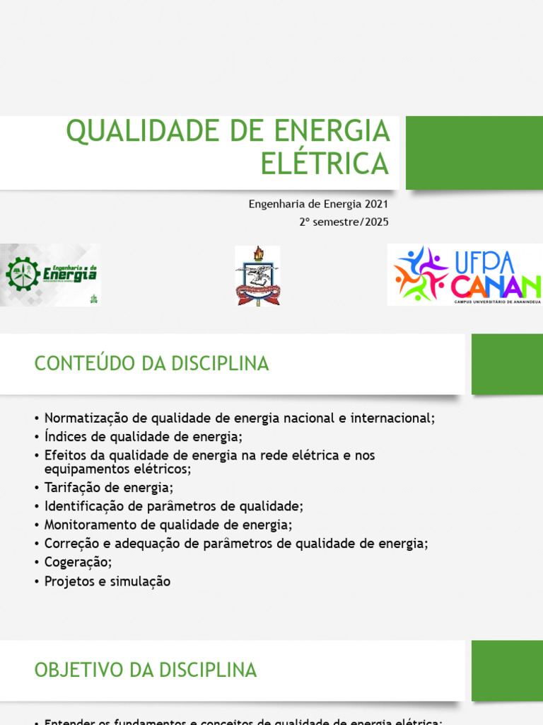 • Entender os fundamentos e conceitos de qualidade de energia elétrica;