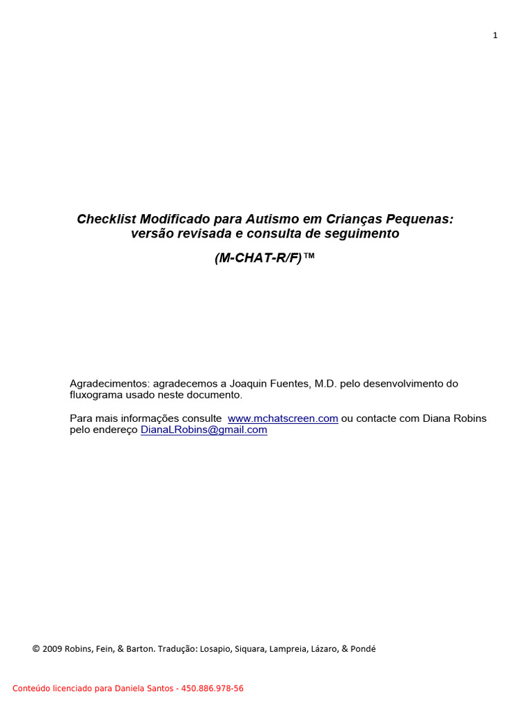 (1) Reproduções do M-CHAT-R/F devem incluir a seguinte referência na parte inferior da página
